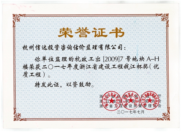 杭政工出【2009】7號地塊A-H樓工程(2017年度錢江杯工程)