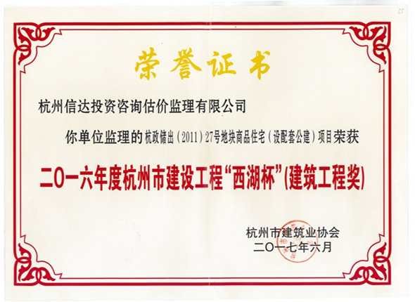 杭政儲出(2011)27號地塊商品住宅工程(2016年度西湖杯)
