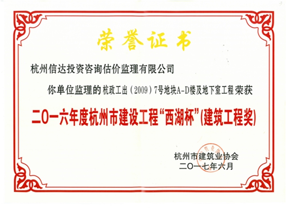 杭政工出(2009)7號地塊A-D樓及地下室工程(2016年度西湖杯工程)