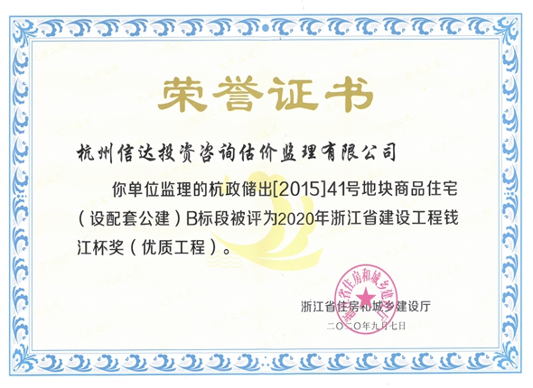 杭政儲出【2015】41號地塊商品住宅B標段(2020年度錢江杯)