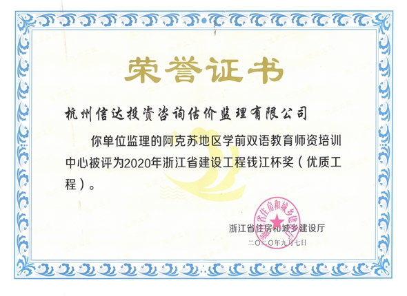 浙江省優秀造價咨詢成果三等獎