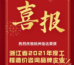 我公司榮獲2021年度浙江省工程造價(jià)咨詢品牌企業(yè)稱號(hào)